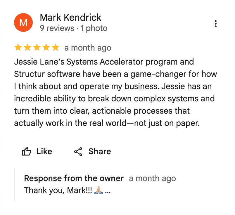 I want to give you the exact systems that will transform your business into a very successful company where you can be the OWNER because of your streamlined systems.